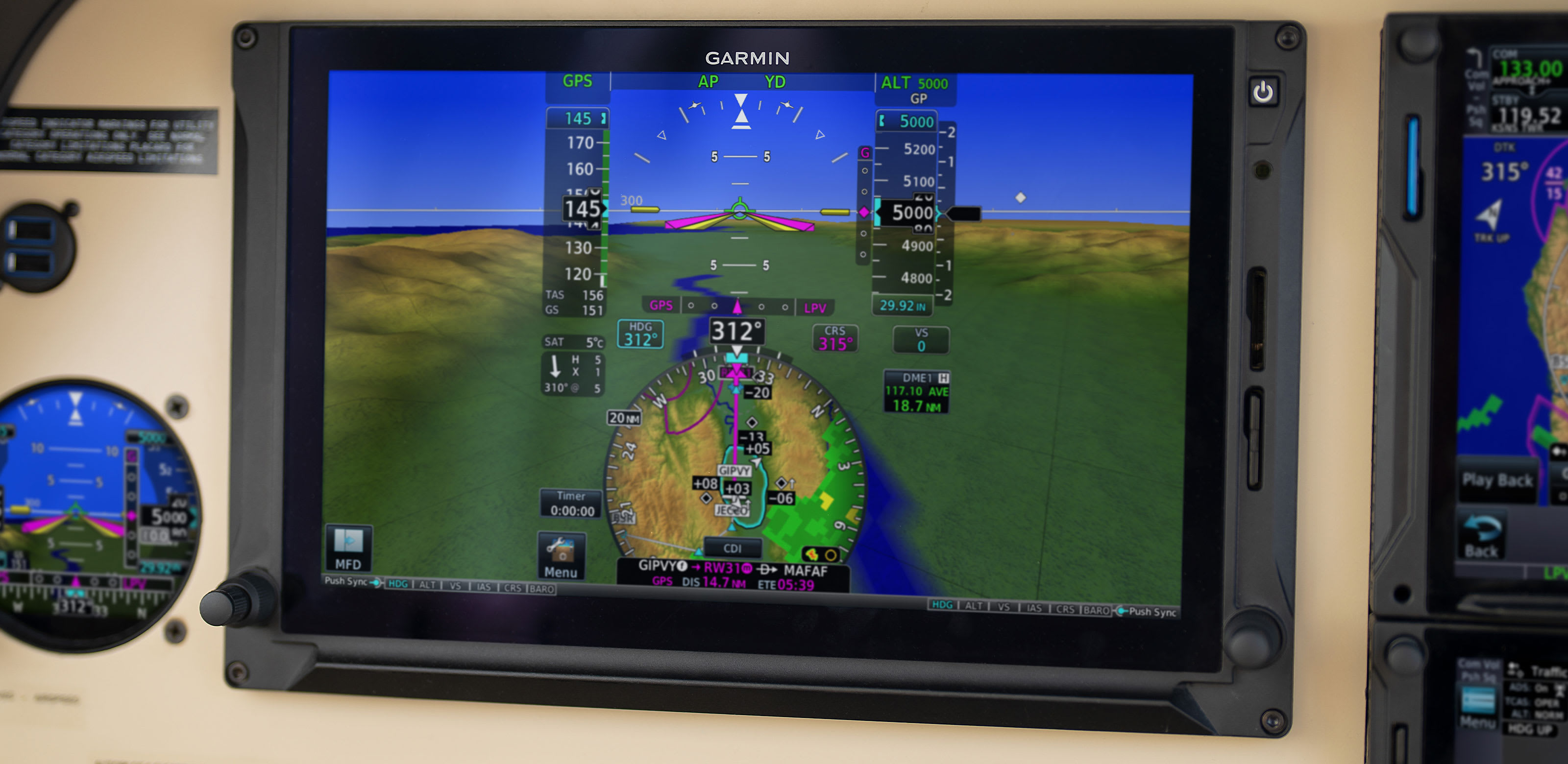For seamless installation, GDM 450R integrates directly with compatible Garmin displays — no interface adapter is required. It also supports RS-232 and King Serial interfacing to connect with legacy distance indicators.