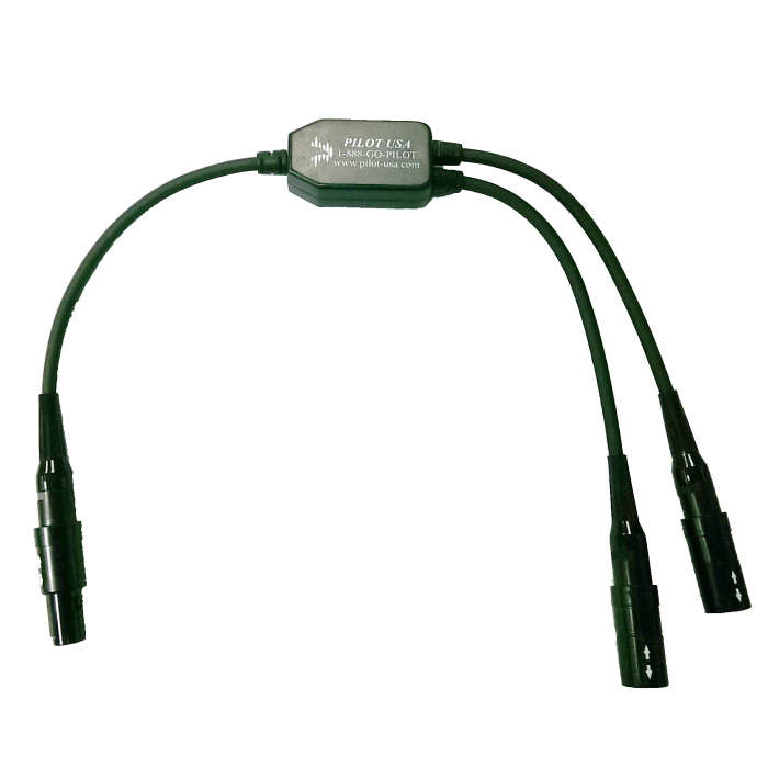 This adapter allows two panel powered headsets to be used in one panel power headset jack. Can be used with any headset using a 6 Pin Lemo plug.