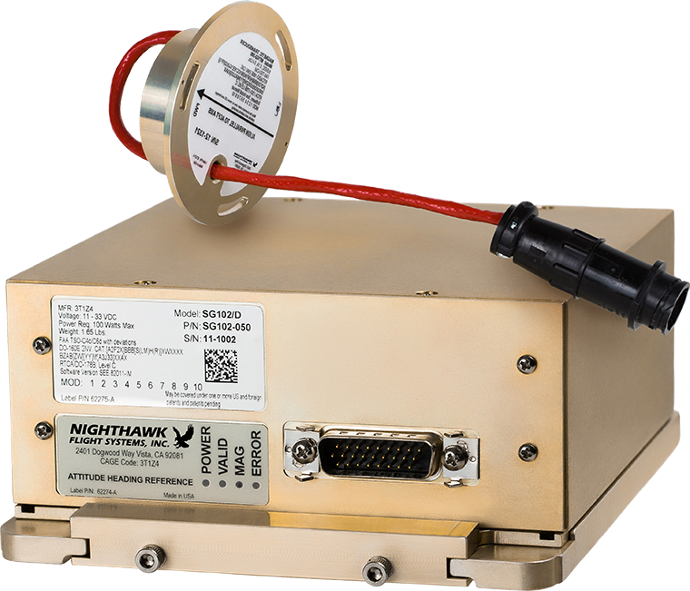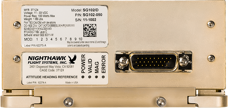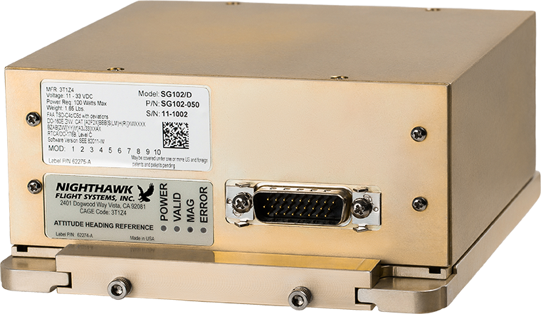 D, for Digital. The SG102/D Attitude Heading Reference System (AHRS) is identical to the SG102 (MOD2) without the analog interfaces. It’s lighter in weight and lighter in price. The SG102/D is designed for non-KG102 equipped aircraft and ideal for new equipment installs.