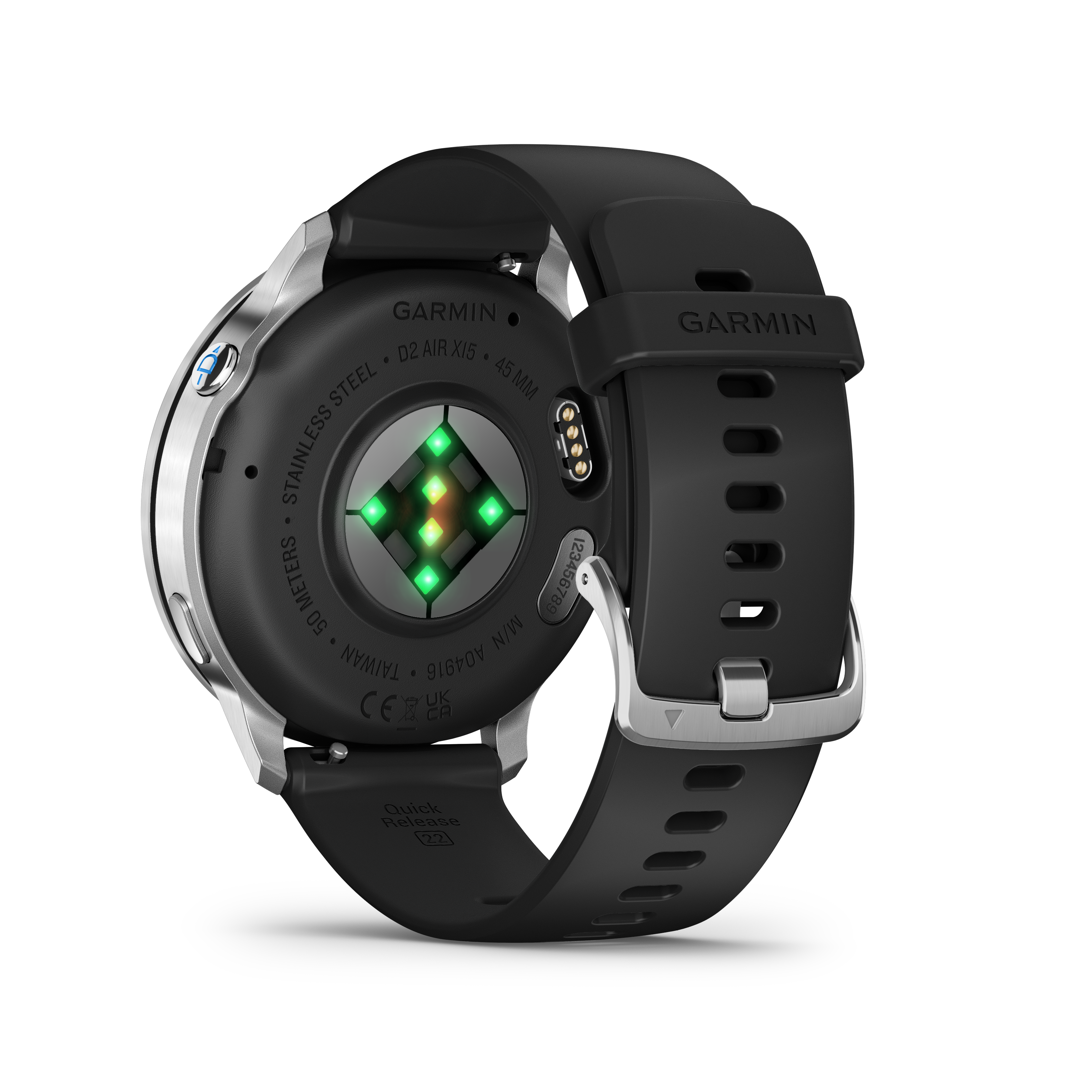 · Offering all-day wearability, this GPS aviator smartwatch features a bright 1.4" AMOLED touchscreen display with durable Corning® Gorilla® Glass 3 lens, 45 mm stainless steel bezel and black silicone watch band