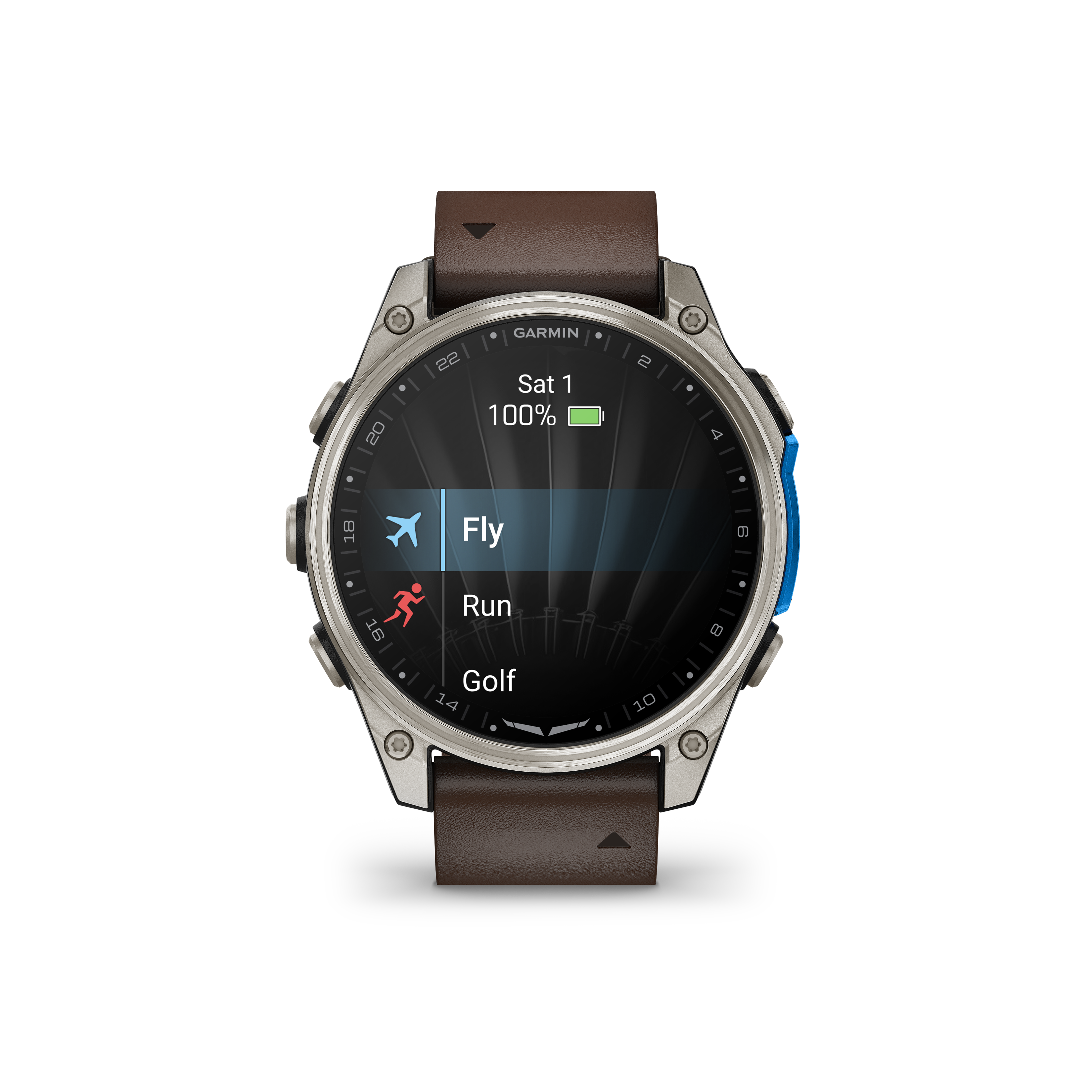 · Premium GPS aviator smartwatch features a bright 1.4" AMOLED touchscreen display with scratch-resistant sapphire lens and durable 47 mm titanium bezel; includes Oxford brown leather and silicone QuickFit® watch bands